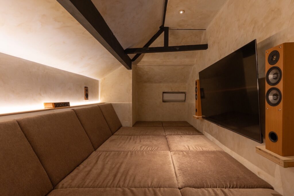 宿泊施設のソファと、シアタールームのクッションのオーダーをいただきました。